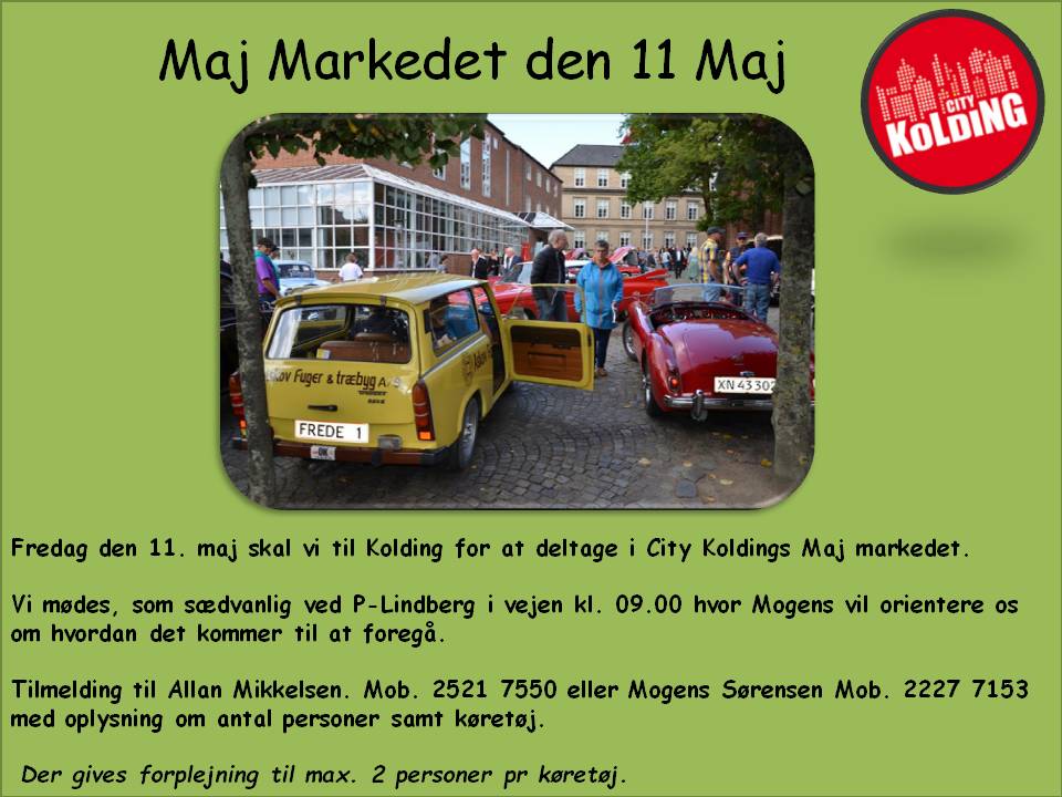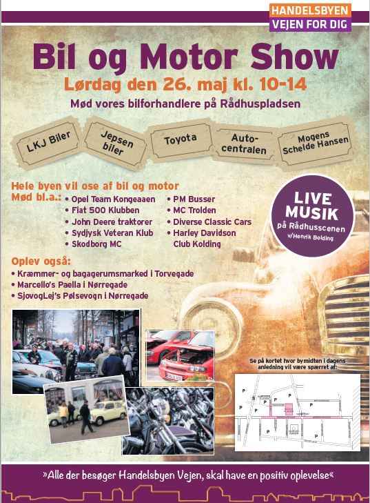 Mere information til Vejen Handelsstandsforening.  Bil og motor Den 20. maj