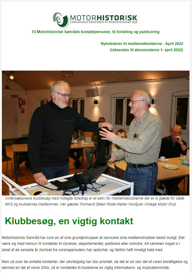 Motorhistorisk samråd. Der er også udkommet et nyhedsbrev fra Motorhistorisk samråd. I kan læse det ved at benytte linket her.