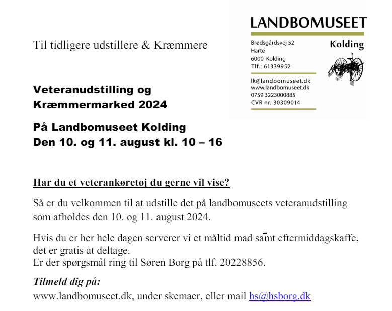 For dem der kunne have interesse, så holder Tønder Veteranklub Åbenthus Søndag den 28. Maj.