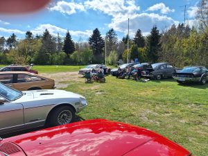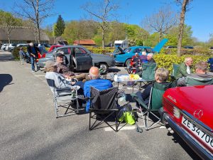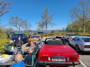 Og Edith, som er blevet vores presse ansvarlige. Har bestemt haft travlt. For 14 dage siden mødte vi op med 6 biler på Sønder skov slot. Til fotografering, til Jydske vestkysten. Artiklen og billederne har i nok allerede set. Hun havde skam også sørget for kaffe og lagkage til os der var fremmødt. Ja ja lagkage var af dem hvor der er kiks på begge sider og chokolade i midten. Men det var og så ok tak for det.