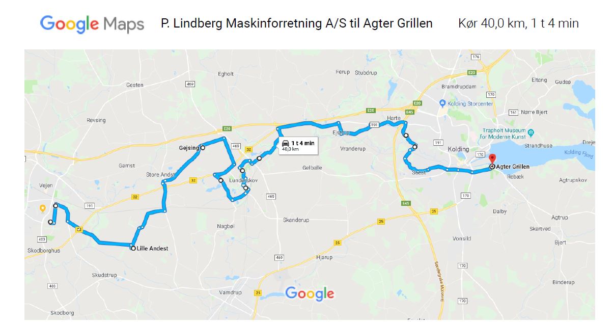 Link til google rute planner.
