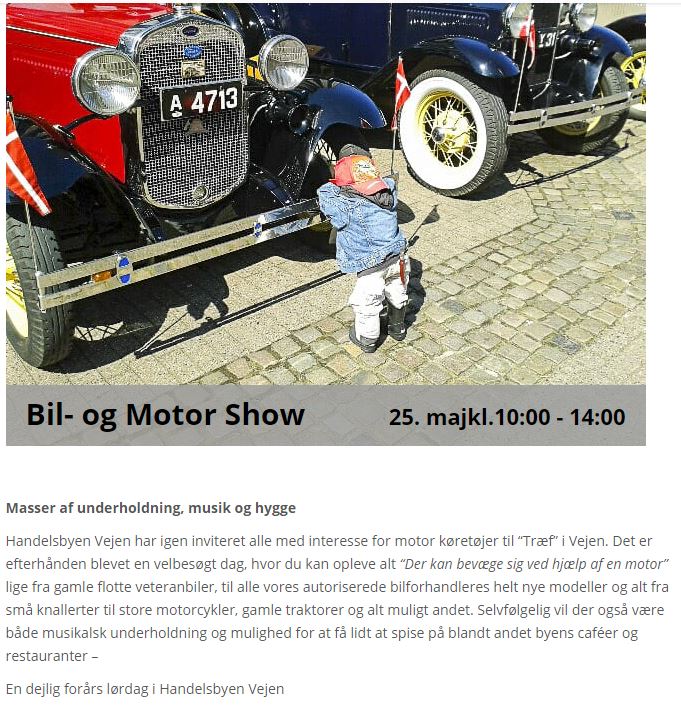 Mere information til Vejen Handelsstandsforening.  Bil og motor Den 20. maj